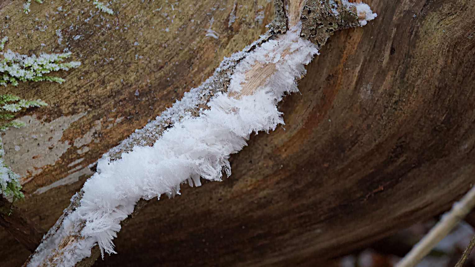 Tijdens een (koude) foto-wandeling gisteren in de Oisterwijkse bossen en vennen, ontmoette ik een oude bekende werkzaam bij Natuurmonumenten. Zij attendeerde me op een bijzonder natuurverschijnsel. De groei van IJshaar op een boomstam. Dit gebeurt alleen onder zeer speciale weersomstandigheden.
