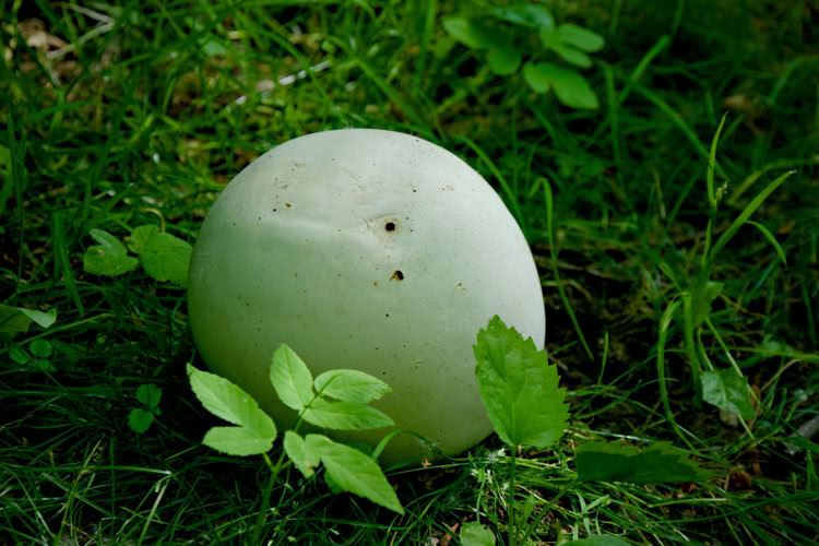 De Reuzen Boleet, ook wel Reuzen Bovist genoemd, komt vooral voor in weilanden, wegbermen en ruigtes op zandgrond (Bron). Dit exemplaar troffen we aan de rand van een onverhard smal fietspad, dat beklemd lag tussen een dichte bossage aan de ene kant en een kabbelende beek aan de andere kant. Een tamelijk vochtige omgeving dus. Verder verscholen, dieper het bos in, zagen we nog een aantal van deze Boleten, maar nog geen was zo groot als dit exemplaar. Het exemplaar dat we hier zagen was ruim 80 cm in doorsnede, en duidelijk aangetast door leeftijd en stevige regenval.